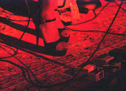 Marilyn: For my Stratocaster, I use a Mosvalve power amp (160 Watts).I have ADA Splitstack speakers (100 Watts, 8 Ohms per cabinet) that can be used for stereo effect on stage. I also use an ART digital multieffects unit, a Sabine Rack Tuner and a Morley (Little Alligator) volume pedal. In addition, I use an ADA midi-controller foot pedal (with 9 banks). For my Fender Precision Bass, I use an Ampeg amplifier.