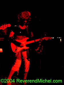 Sarafina: Gosh, I think that that was a good response! As for being trans, yeah, I have to agree with Marilyn's assessments. It's interesting, as there really is no roadmap for us to follow. There never has been an all transgendered rock band before. We've been compared to the New York Dolls, but that's not really the same thing. As for special feelings or experiences, I'd like to add that it is truly wonderful to think that my music is so intertwined with my transgendered status. Not everyone can see such integration in their lives. I'm very thankful.