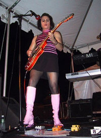 Marilyn: When we first started two years ago, there was very little, at least what I would consider transgender. A largely drag queen band, Pepper Spray, in San Francisco were playing several clubs in the city and achieved a nice following and notoriety in the Bay Area. Another good band, Blue Period, featured a transgendered lead singer. Honestly, before I joined the band, I simply didn't follow the GLBT scene that much. But now, I think transgendered artists anyway, are starting to come out of the closet. I have to think that we have helped a little in facilitating this process. Sarafina: Agreed. I was very surprised to find that there weren't more trans artists out there in the first place. I was aware of some artists, but most were soloists, and none seemed to enjoy much commercial success. That might change. We have seen a lot more come out of the woodwork since. Being told that we are an inspiration is staggering.