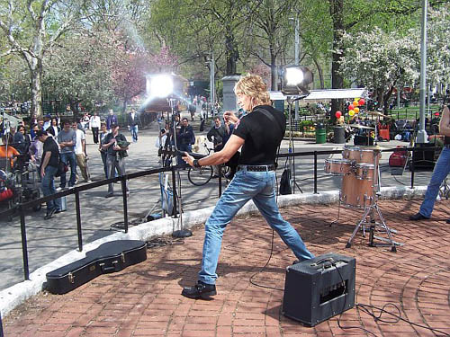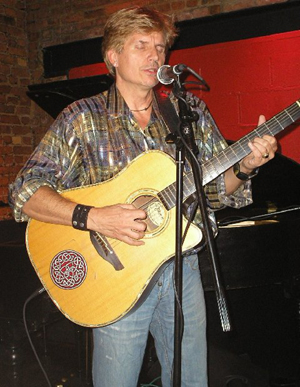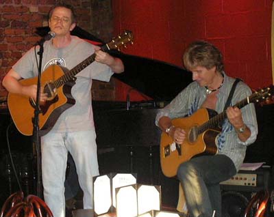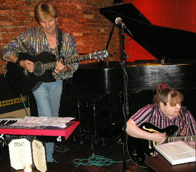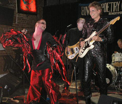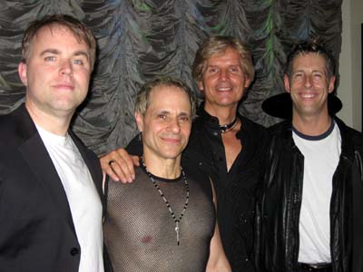 I've asked so many artists about this. What do you think? RU: (Laughs) "Financial gain" ?!?!? I pissed my life away to play music. I turned down careers in other, more lucrative fields to strum my geetar. I'm satisfied if I can just eek out a living doing it. Actually, your question is a deep one. I see it in a different context. The problem plaguing many gay male artists is more of a "diva-wanna-be" fantasy issue. It's not that they mainly want to achieve financial gain, it's that they wanna be a STAR! It has been my experience that lesbians are more rooted in the fundamentals of real, live, meat-and-potatoes music making, and have developed their own network for doing do. Too many gay males wanna be frontman and thus mistake star power for talent. That being said, look around at the current arts scene in America: EVERYONE is mistaking star-attitude for talent. Rock has devolved into a bunch of 17-year old "senza talenta faceheads". Hey, am I ranting yet? | ||||