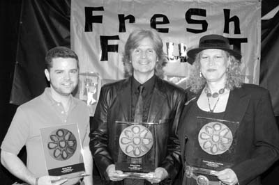 PM: Do you still keep in touch with your former bandmates through the years? RU: I do with many. Over the years, we get in touch - especially as we collaborate on converting old analog band tapes to digital, or old band photos to image files, etc. Drummers seem to be especially long-lasting friends. I guess they are the least diva-ish. My trusty bass player Steve Sullivan played bass for me way back in the 1980's. At that time, he quit music to get a PhD. He moved to Washington, DC. Now suddenly after 25 years, he's moved back to NYC and happily we're back playing together. Go figure. The bond between musicians-- It's one of life's special joys. PM: I've noticed that! Which album from your discography means the most to you, creatively? RU: Gasp! I love all my children equally! Seriously - "Godless" I think is the best "singer-songwriter" album I've done. "Elegies" has my best instrumental work. "Rock Widow" is my best overall "rock" effort. PM: What makes Robert Urban's music distinctive? RU: I have no idea. For better or worse, permit me to opine: A queer dares to wield electric lead guitar (the greatest phallic symbol of our times) in the vein of classic blues rock? The combo of rock and classical music styles? Philosophical, nihilist, Nietzschean, pretentious lyrics? Probably my throwback-to-the-late-60's psychedelia style of sound! PM: When you listen to your earlier works, do you hear your own progress in your guitar work? RU: In the very early recordings, I sure do. Lordy, it was a struggle for me. When I was coming up, rock was pretty much a straight man's macho game-- I always felt like the odd man out looking in. But actually, when I listen back, I'm better than I thought I was at the time. I was always so hard on myself. Now I listen to some of the guitar solos on my retrospective "Who I Was" CD, which is compiled from my 80's recordings, and I they really make me feel proud. PM: Where did the idea of the annual New York City Fresh Fruit Festival come from? RU: I've produced some shows for them; performed for them, and have been a consultant member of their Board of Directors, but honestly I have no idea where they came from. You'll have to find and ask an original "Fruitie"! They are an odd bunch of bananas (so to speak...) PM: "Odd" is a good thing-- and so are bananas! (Laughs) What motivates your in your sense of community? Like, when you wake up in the morning (afternoon?! evening?!), what's the driving force that makes you want to do more for the GLBT community? RU: It's just a natural gravitation towards kindred spirits - since I'm queer I tend to gravitate towards my own kind, I guess. And since I'm a musician I lean towards the LGBT arts community within the larger LGBT mainstream establishment. | ||||