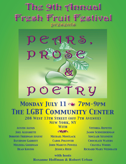 Monday July 11th - 7pm to 9pm POETRY at The LGBT Center on West 14th Street in NYC. With co-hosts Robert Urban of URBAN PRODUCTIONS and Roxanne Hoffman of POETS WEAR PRADA