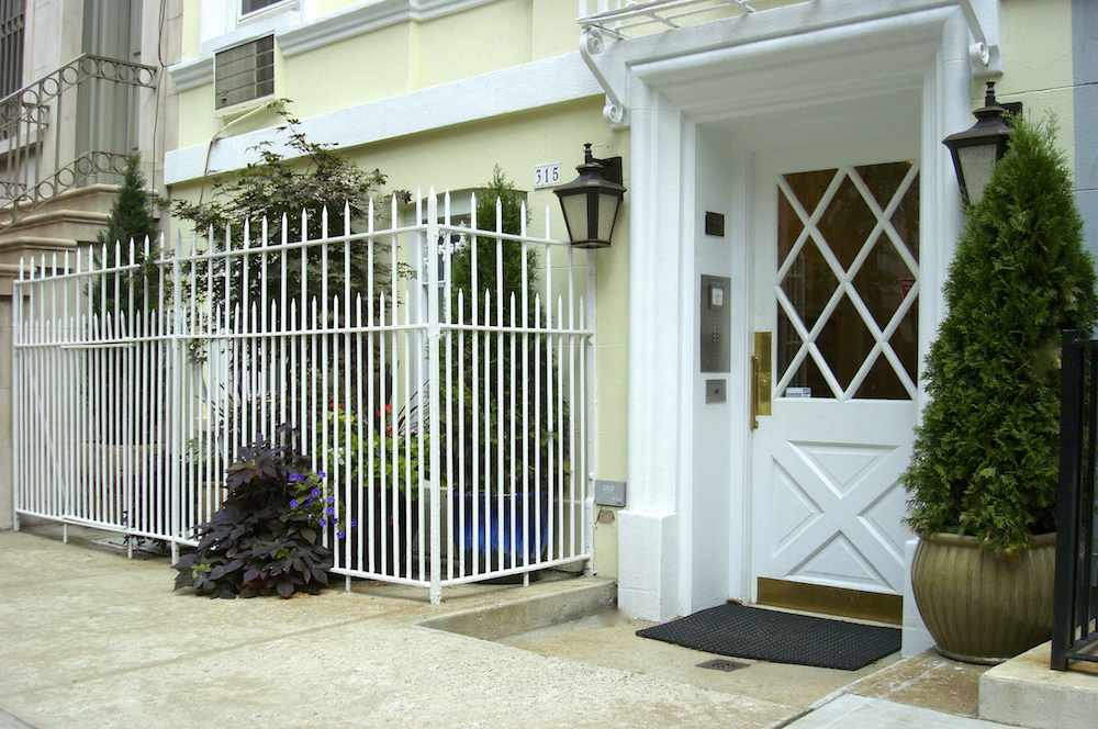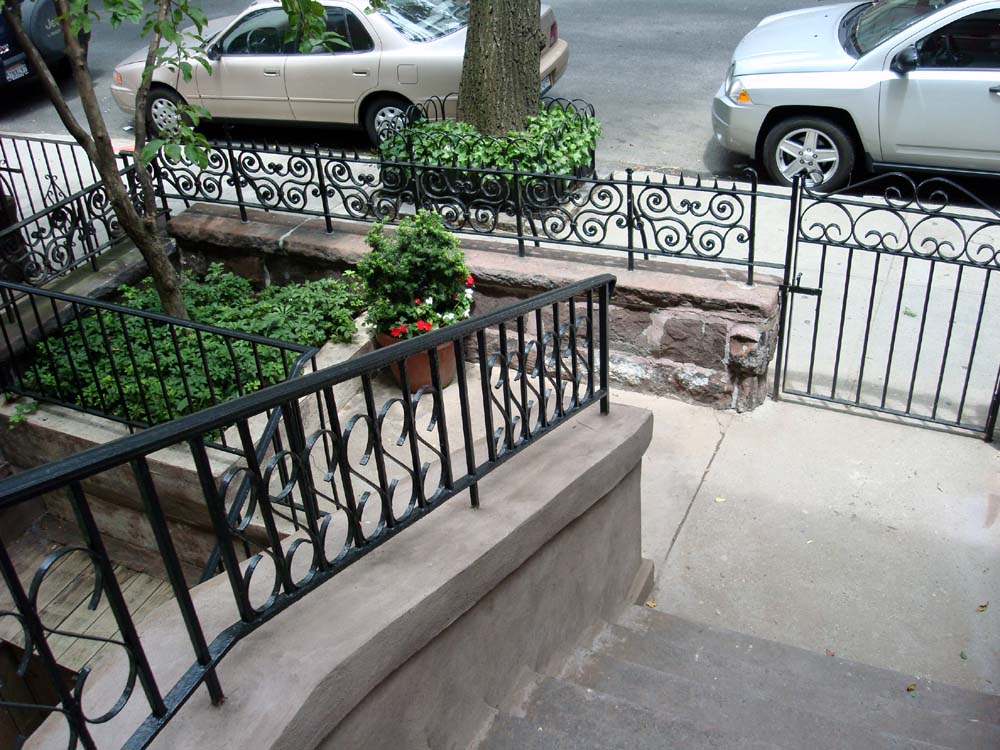 Manhattan townhouse front garden spaces and sidewalk tree-wells.